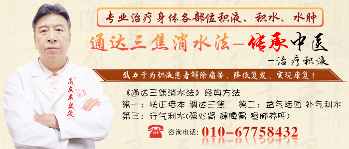积水专家主任医师——健脾利水扶正法治疗身体各部位积水(胸腔积水、肺积水、腹腔积水、肝腹水),采用《健脾利水扶正法》,“三焦者,水谷之道路,气之所始终也。若三焦气塞,脉道壅闭,则水积为饮,不得宣行,聚成痰饮”。 人体水液的输布排泄,主要依靠三焦的气化作用和肺、脾、肾的功能活动,气化则水行。通过此方法患者体液得到正常的输布和排泄,强心开肺宣发肃降通调水道,充分发挥中医药优势重新调动人体自身机能,使积水从大、小便自然排出体外。从根本上解决了积水不断复发中、西医临床难题。